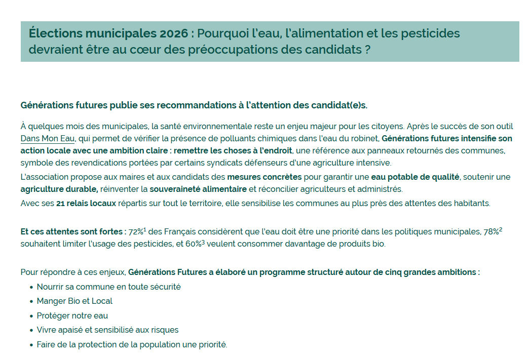 La liste de Daniel Bourguet est la seule liste de Mauguio & Carnon qui s’engage pour honorer la charte de santé environnementale du projet Source Commune de l’association Générations Futures.